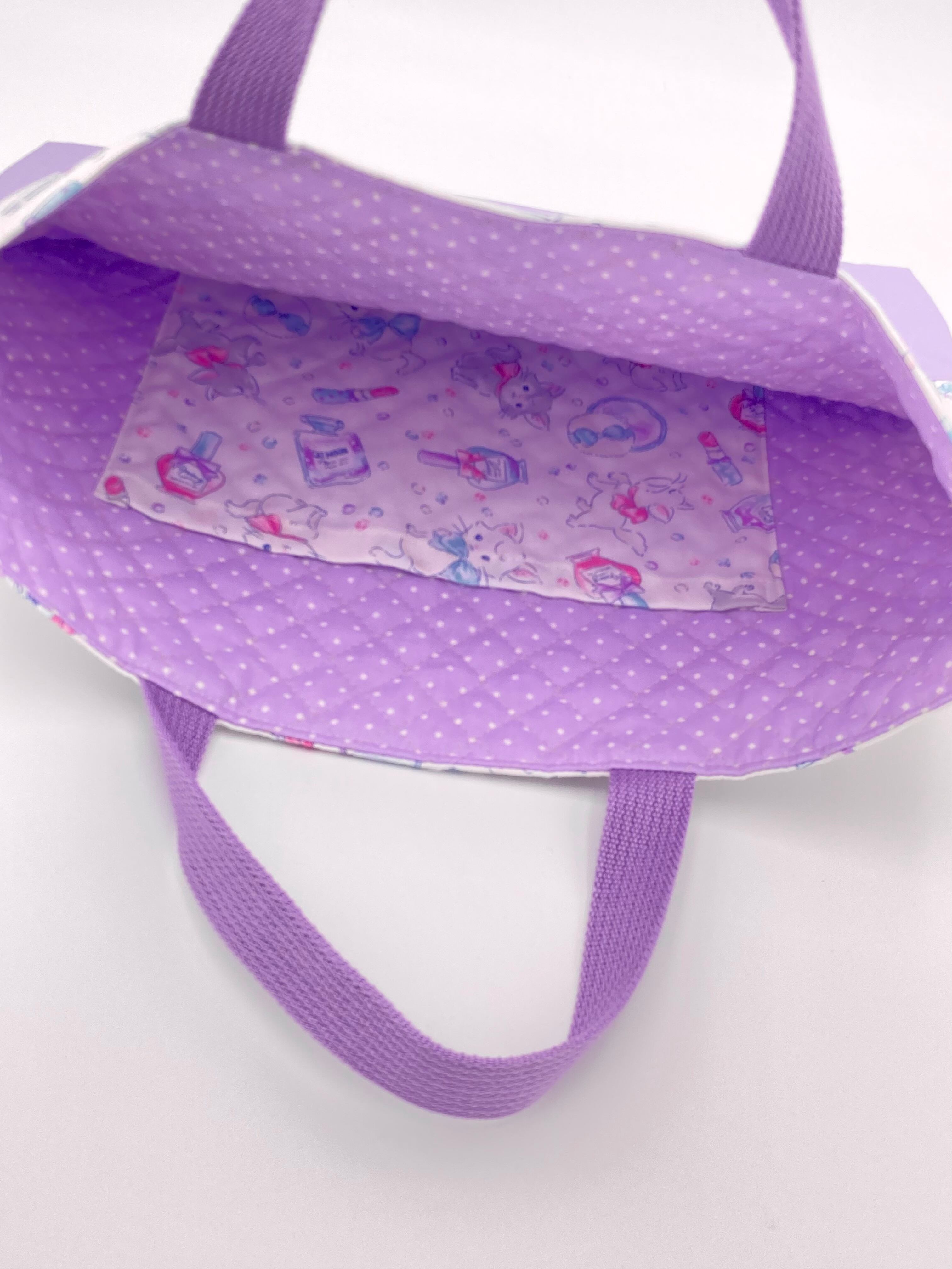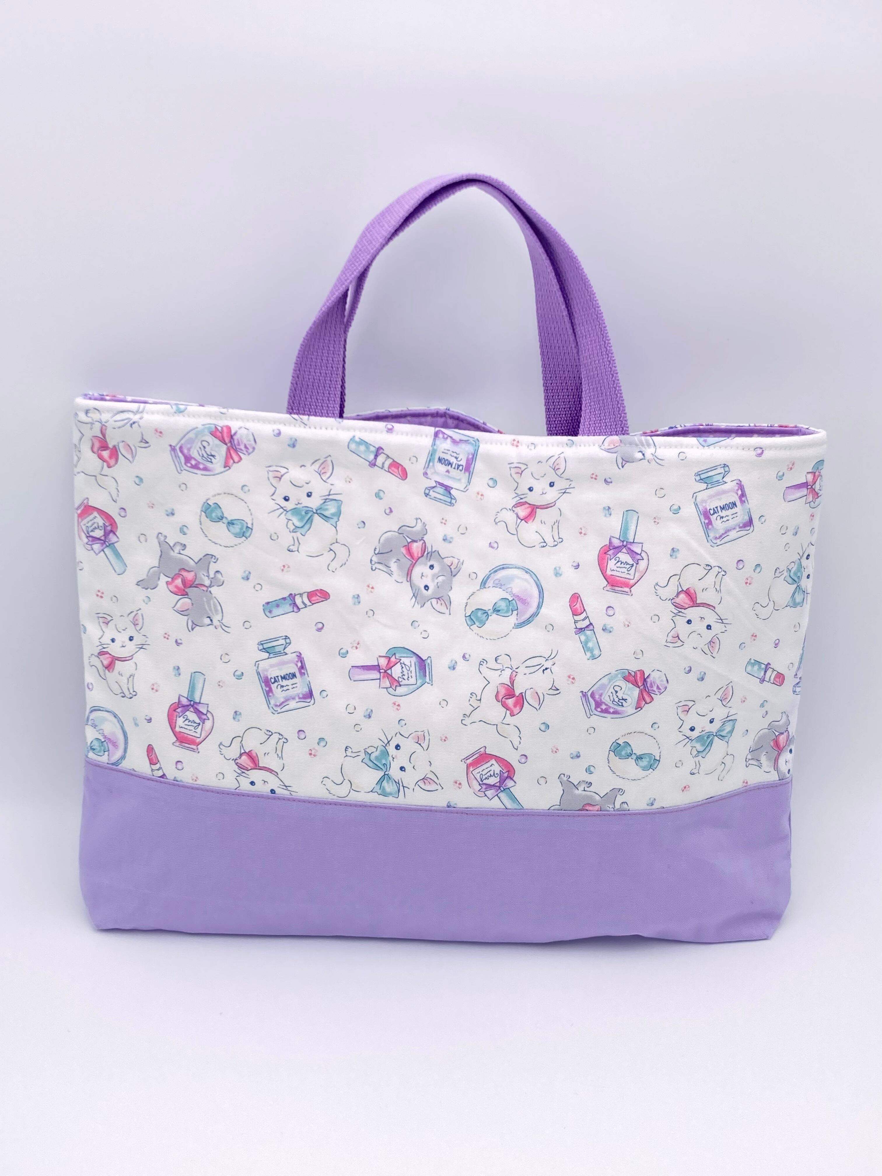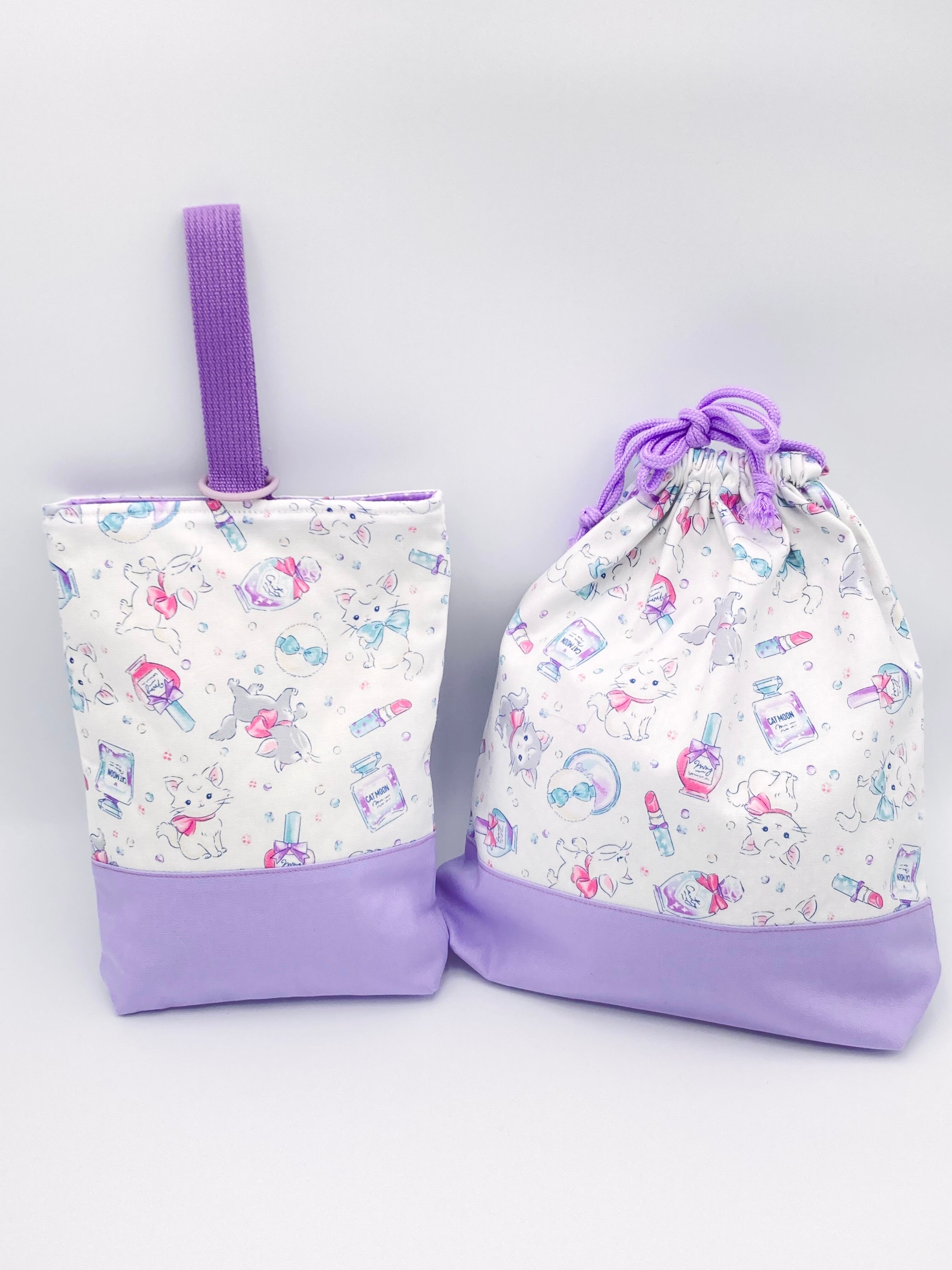 入園グッズ 6点セット レッスンバッグ・シューズバッグ・着替え袋(体操服袋)・弁当袋・コップ袋・ランチマット クラシカルモダンシュシュ キャットコスメ オフホワイト ラベンダー ゆめかわ ゆめかわいい