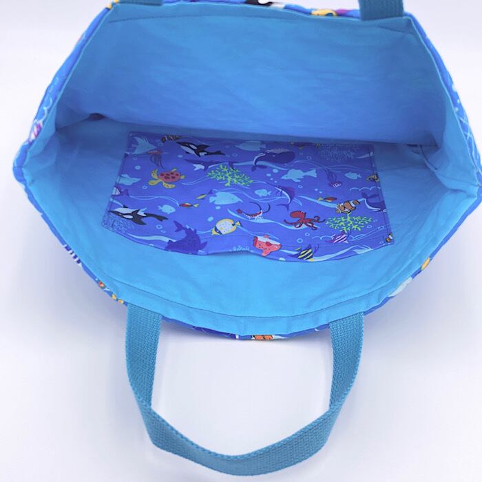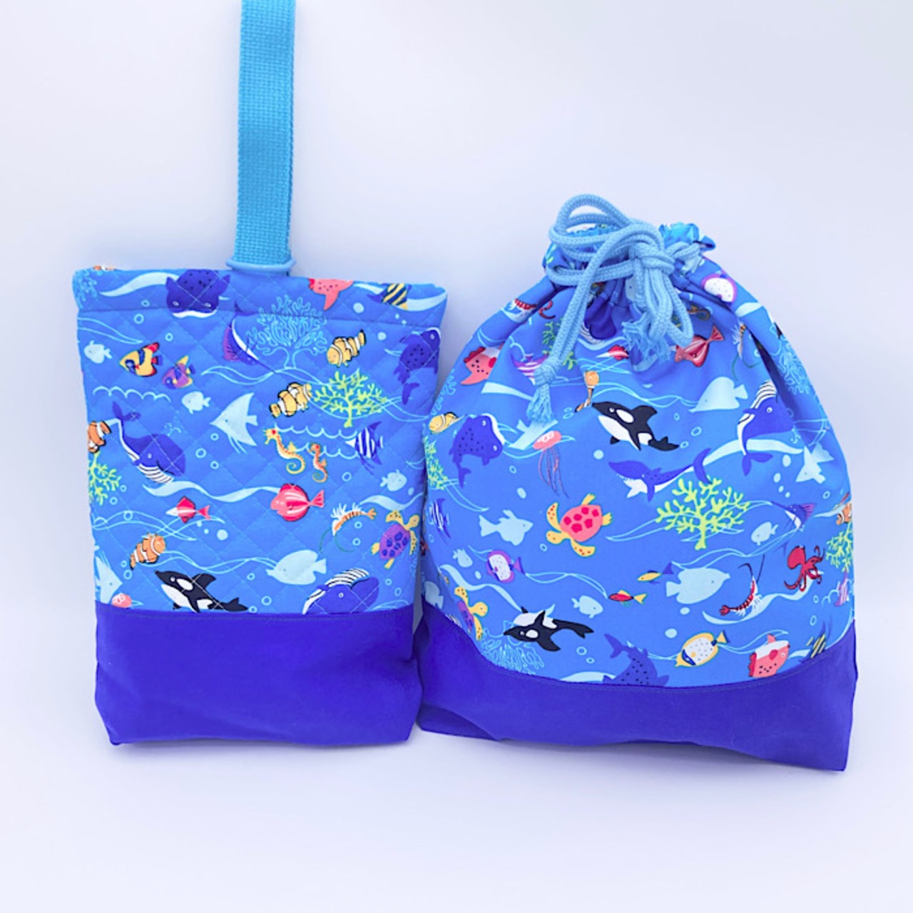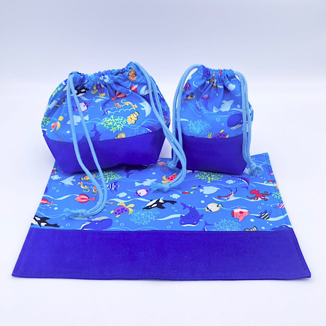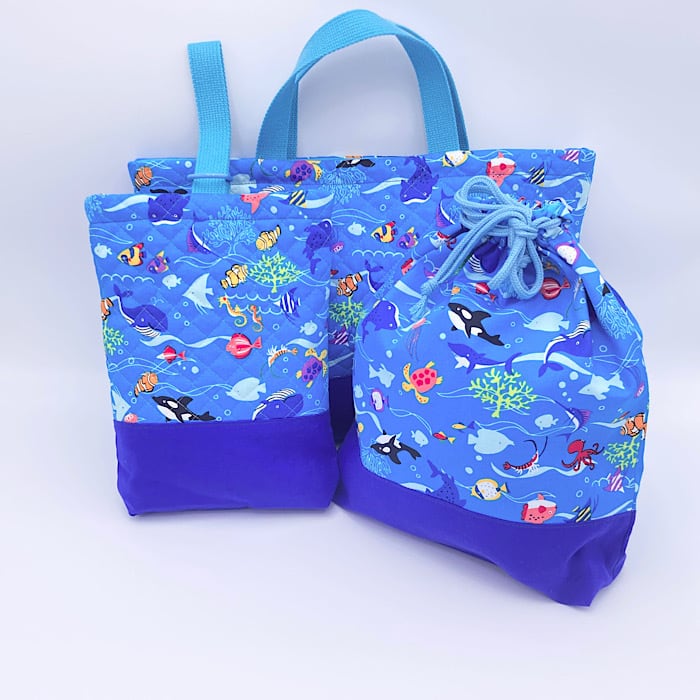 入園グッズ 6点セット レッスンバッグ・シューズバッグ・着替え袋(体操服袋)・弁当袋・コップ袋・ランチマット 海の生き物 水族館 ライトブルー 男の子